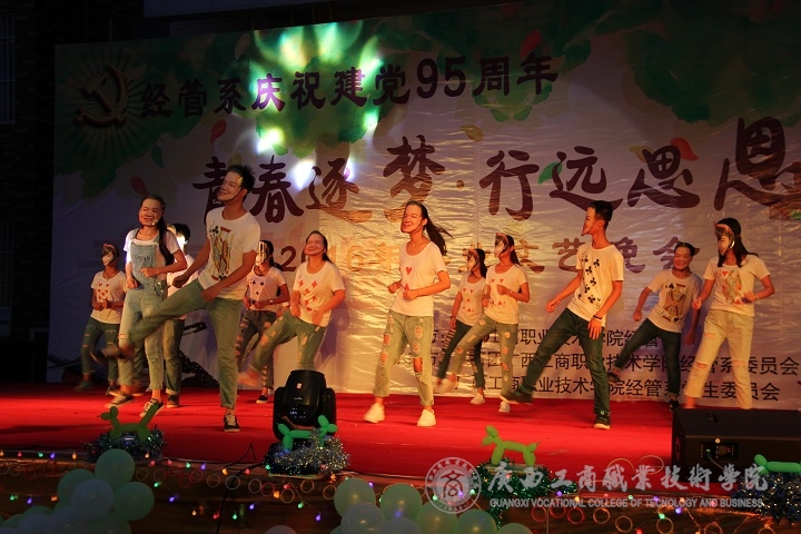 6月30號晚上七時,晚會準時開始,扣人心弦的歌聲,動魄帶感的歌舞串燒,詼諧幽默的情景劇串燒等精彩節目讓人目不暇接。其中歌曲《第一天》勾起觀眾無限的回憶,仿佛回到第一天師生在廣商院相遇,學生們青澀的笑臉還在眼前的場景。而歌舞串燒《blow》的表演者用他們蓬勃的青春活力,從校園中發現著美,創造著美,詮釋著對廣商院的依依不舍。尤其人氣爆棚的印度風情舞《鉆石情人》是獲得全場驚叫聲最多的節目,表演者男扮女裝,絢麗的服裝、妖嬈的舞姿,引起了臺下陣陣尖叫和轟動。