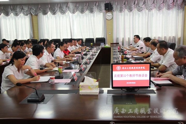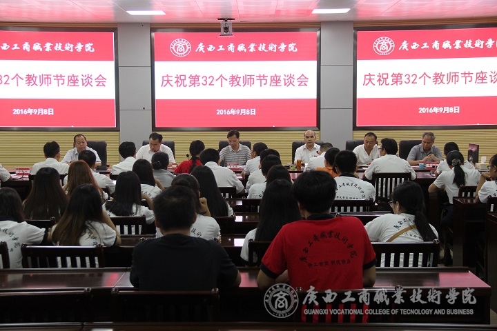 尊師重教是中國的優良傳統,早在公元前11世紀的西周時期就提出“弟子事師,敬同于父”。2016年9月8日下午2:40,我院在校本部教學樓2119會議室召開“甘守三尺講臺,爭做‘四有’教師”——慶祝第32個教師節座談會。自治區糧食局副巡視員、人事處處長韋尚英、學院黨委書記覃武云、學院院長、黨委副書記陳杰及其他學院領導、各部門、各單位代表、教師代表以及各系優秀學生歡聚一堂,共同慶祝教師節。會議由學院黨委覃武云書記主持。