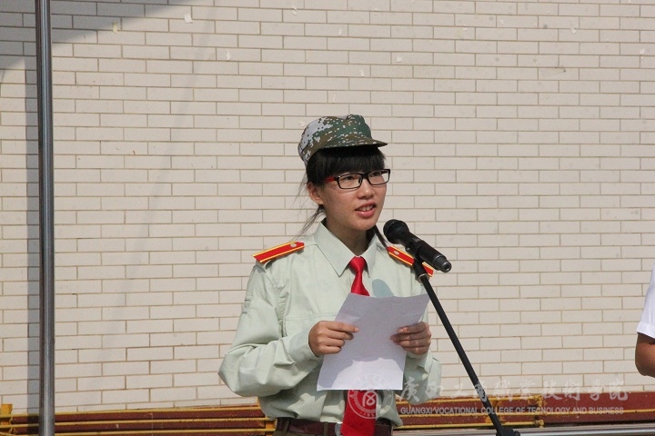 會上,主持人廖顯圖副部長介紹了參加動員大會的領導,隨后由2016級學生代表稅會1601班譚志云同學進行發言,代表即將參加軍訓的新生們進行表態。緊接著武警廣西總隊直屬支隊楊友元股長做了鼓舞人心、熱情洋溢的動員發言;最后,學院黨委副書記、紀委書記蒙啟成同志做了重要的講話,祝福本次軍訓活動取得圓滿成功; 自此,為期十天的我院2016級新生軍事課教學訓練在國旗下拉開了帷幕。