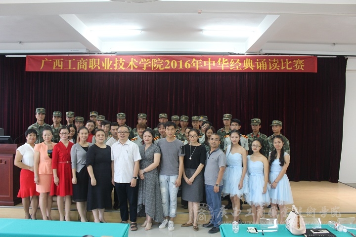 “詩的語言,典藏著五千年悠久的歷史文化;詩的聲音,演繹著不朽歷史的風骨鏗鏘”。2016年9月28日下午,廣商院“中華經典誦讀”比賽在院本部2145報告廳拉開帷幕。蒙啟成副書記親臨現場與各部門、系部的老師以及受邀到學院指導軍訓的部分教官觀看了本次比賽。