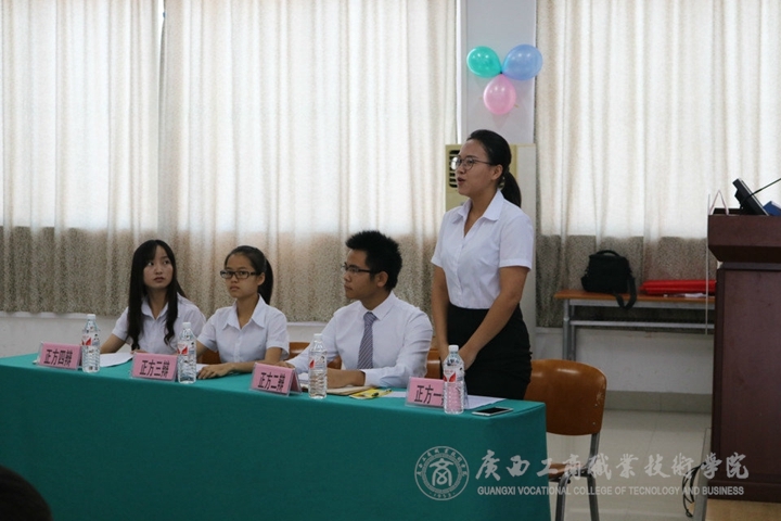 廣西區疾控中心何怡副主任、公共基礎部周紅湘副教授、財信系王立杰老師、會計系李洪業老師、經管系馬力老師擔任此次比賽評委。辯論賽由院學生委員會學習部部長郭美玲主持。