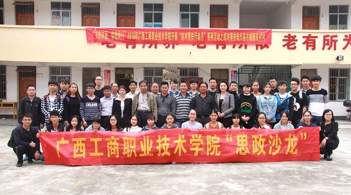 ??????? 2016年11月12日上午10時整,我院社科部主任劉萬英教授帶領社科部的6位老師以及思政沙龍的30位學生一行前往玉林市陸川縣古城鎮良村進行結對幫扶活動。在抵達良村村委會后,我院社科部劉萬英教授、社科部的6位老師和我院派進良村的“第一書記”馮詩根以及良村村干部在會議室召開小組會議。