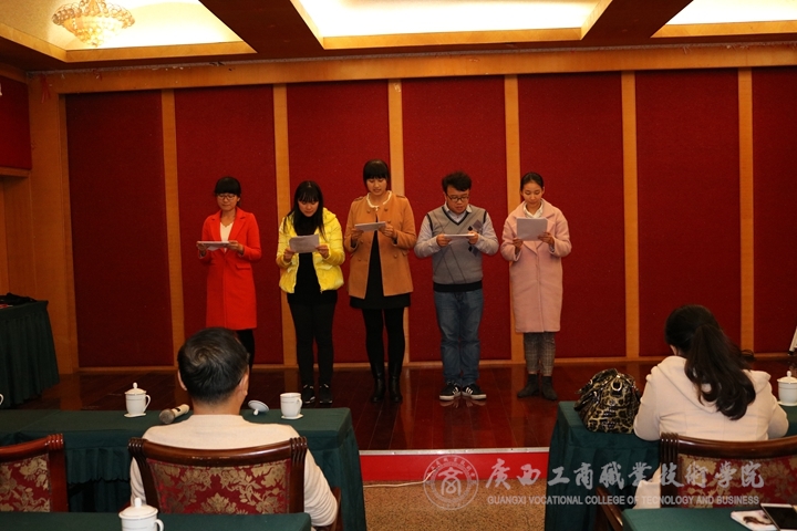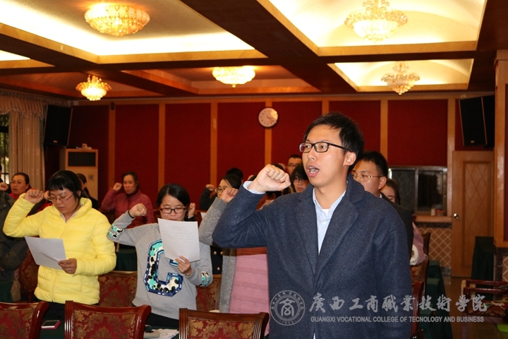 ??????? 11月25日下午14:30,學院工會在南寧市會議中心第五會議室舉辦了新會員入會儀式暨工會干部培訓班,學院工會主席蒙啟成、常務副主席陳承偉、專職副主席王桂玲出席了本次培訓。學院工會干部和新會員共同參會。