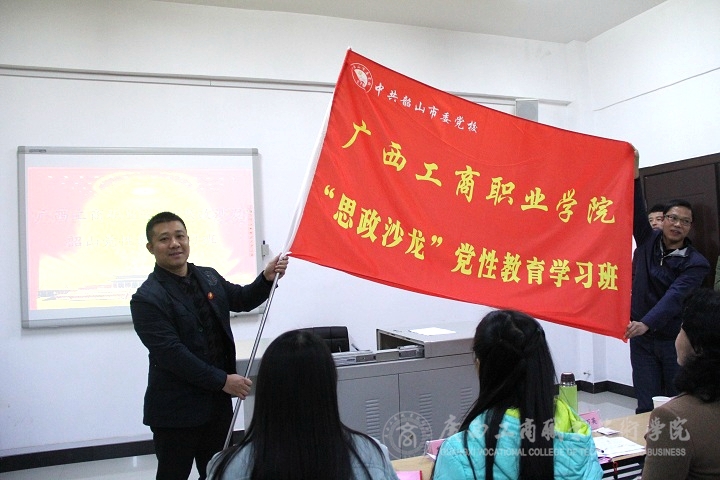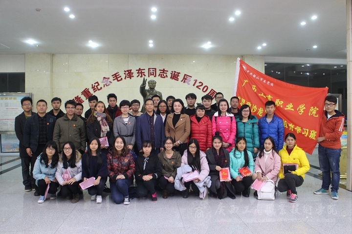 晚上19時,思政沙龍的老師和學生跟隨帶班老師沈林,來到了中共韶山市委黨校參加廣西工商職業技術學院韶山黨性教育培訓班開班儀式。