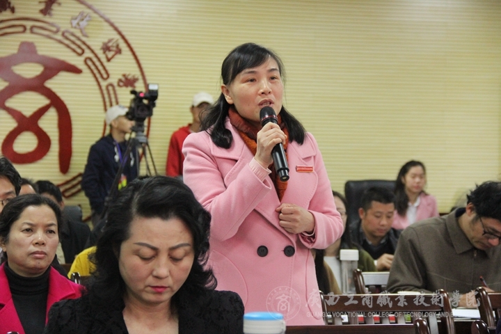 會上,吳宇雄局長還回答了財信系主任覃遠霞提出的關于“‘十三五’時期糧食行業的發展狀況如何?我院涉糧專業學生的就業前景如何?”以及經管系學生提出的關于“結合習近平總書記在全國高校思想政治工作會議上的重要講話精神,如何讓青年學生成為德才兼備、全面發展的人才”等問題。