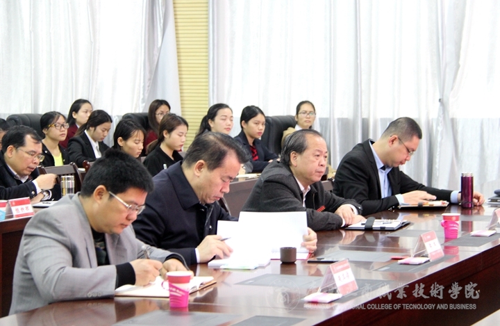 自治區糧食局辦公室主任朱其俊、學院中層領導干部、各黨總支、黨支部委員和學生代表參加了本次報告會。