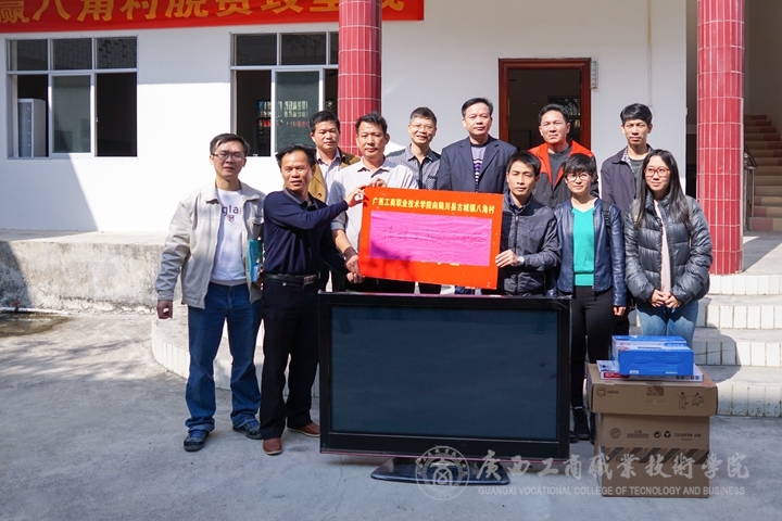 ??????? 我院精準(zhǔn)脫貧攻堅(jiān)工作隊(duì)協(xié)助八角村整理核對扶貧資料、為八角村搭建簡易扶貧信息數(shù)字平臺,并由助力工作隊(duì)代表學(xué)院向八角村捐贈大屏幕電視和電腦。