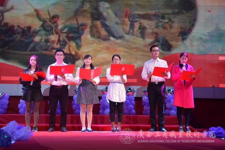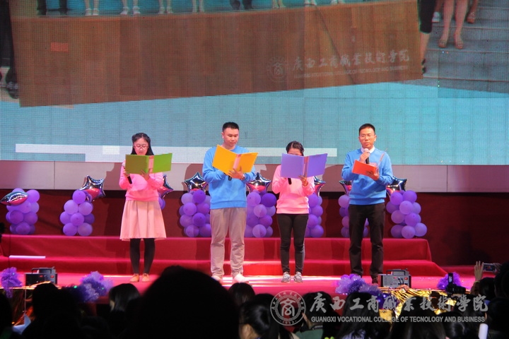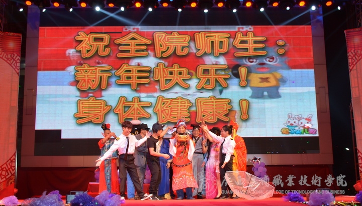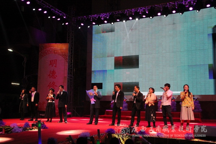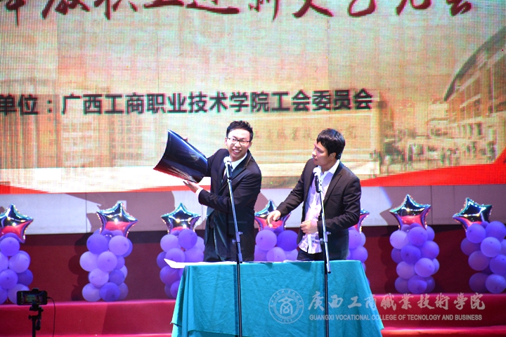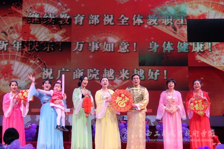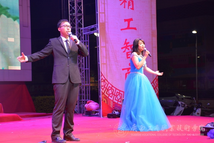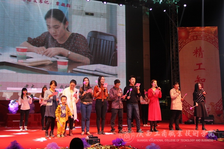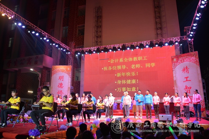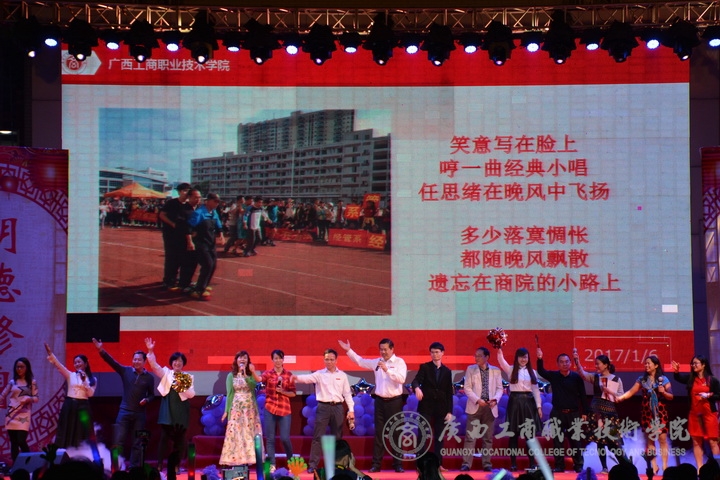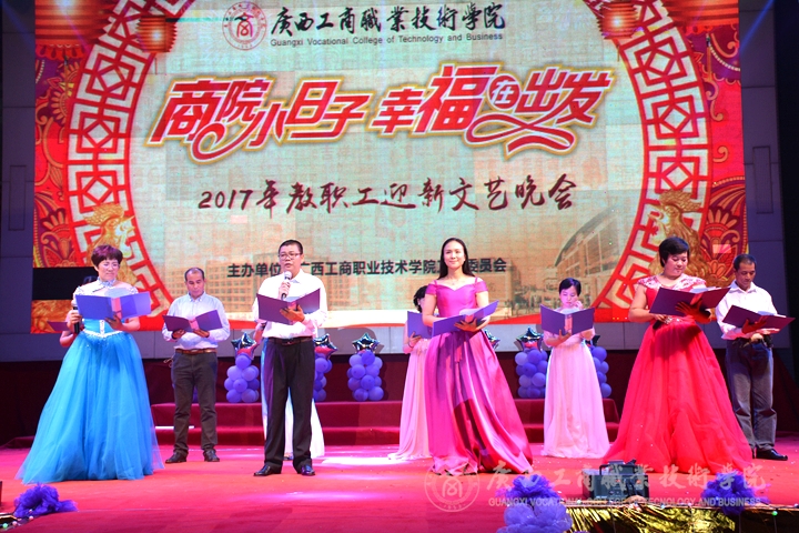 歡欣鼓舞辭舊歲,豪情滿懷迎新年!2017年1月6日晚19時,我院2017年“商院小日子,幸福在出發”教職工迎新晚會在校本部LED大屏幕下隆重舉行。全體教職員工及其部分家屬歡聚一堂,輕歌曼舞,喜迎2017年的到來。晚會由劉佳家、馬力、劉源溢、張東冬四位老師主持,我院領導班子及全院師生觀看了本次晚會,晚會由廣西工商職業技術學院工會委員會主辦。