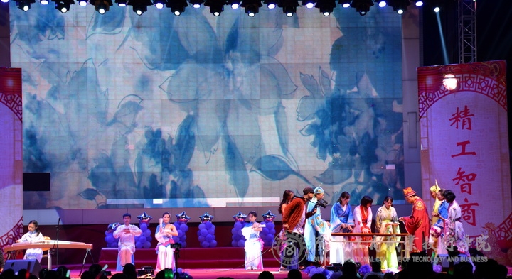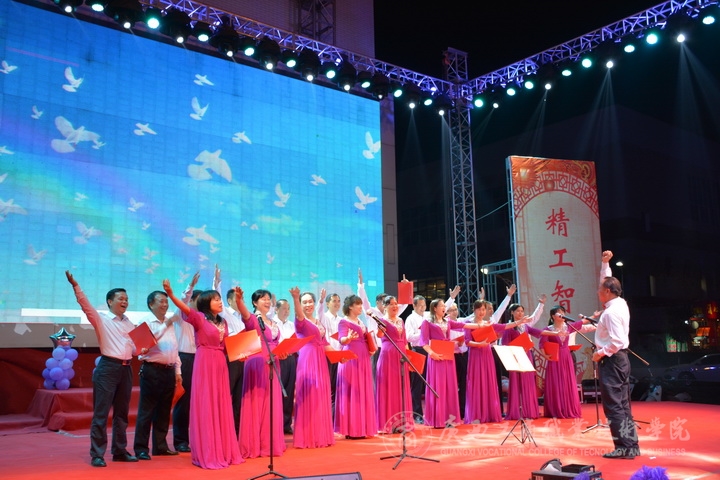 隨著晚會漸入佳境,繼續精彩不斷,歌舞不斷。經管系分工會的《從七月開始》,以七月的紅旗為生命高歌;社科部分工會的《山路像花兒一樣》以多彩的服飾,教師們優美的身姿,展現了民族文化的多樣性。架子鼓伴奏下的繼續教育部工會小組帶來了趣味舞蹈《桃花朵朵開》;還有黨委學工處的獨唱《愛是永恒》歌聲細膩,更是與觀眾有了精彩的互動;經典是讓人無法忘懷,廣商院老男孩樂隊將樂器的結合經典歌曲《真的愛你》使臺下的觀眾也不由自主的唱起來。財信系工會帶來的舞蹈《瘋》把握住了爵士特征與街舞風格,將時尚元素完美結合。悠揚的歌聲,歡快的舞蹈,悅耳的演奏,精彩的相聲、鏗鏘有力的朗誦……將整個晚會裝點的精彩紛呈。晚會的最后由歌曲《共筑中國夢》歌聲中落下帷幕……
