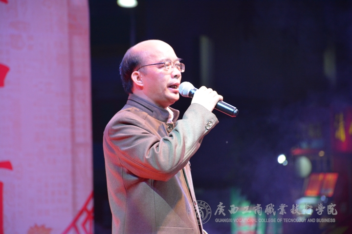 現場華燈璀璨,熱鬧非凡。晚會伊始,主持人向大家介紹了到場的學院領導、嘉賓及教師,接著由黨委書記覃武云做新年賀辭,他代表學院黨委向全體師生致以誠摯的問候和新年美好祝福。
