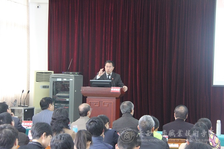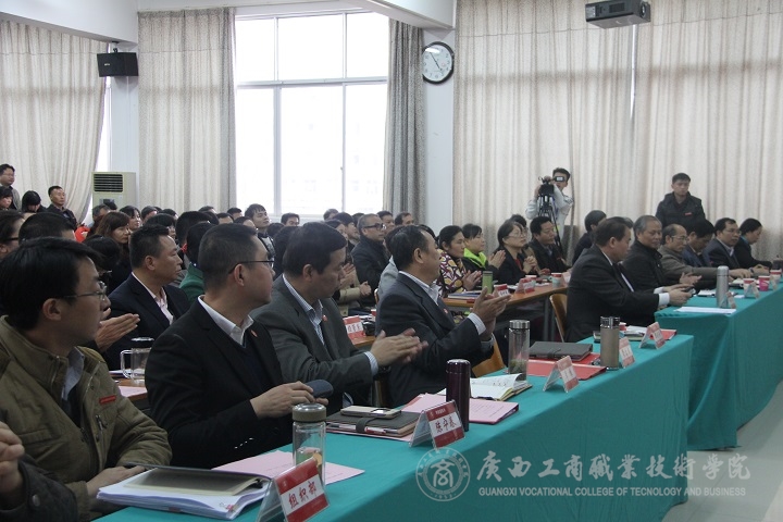 2017年1月13日下午,我院于校本部報告廳召開了2016-2017學年第一學期期末總結大會。學院黨委書記覃武云、院長陳杰、黨委副書記、紀委書記蒙啟成、副院長李仕欽、副院長李維、副廳級調研員黃永蓬、副院長陳寧春以及全體教職工參加了本次會議。大會由院長陳杰做本學年工作總結。