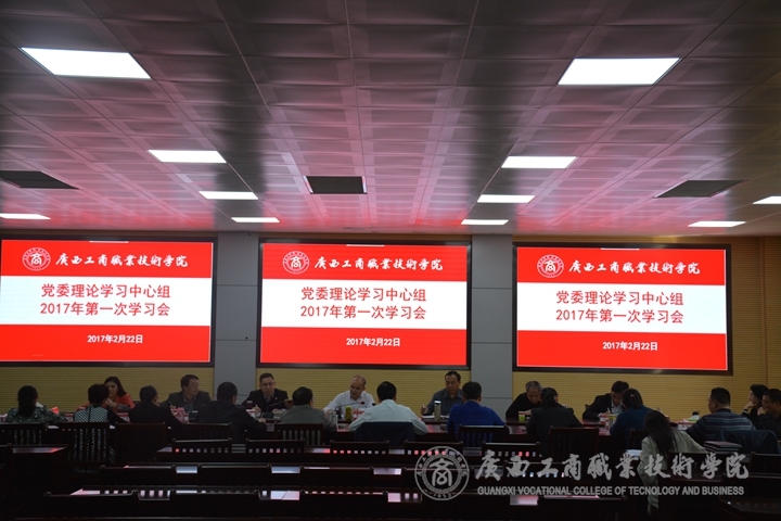 2月22日上午,學院在校本部召開黨委理論學習中心組2017年第一次學習會。黨委書記覃武云同志、黨委副書記、紀委書記蒙啟成同志、副廳級調研員黃永蓬同志、副院長陳寧春同志出席會議。學院各部門負責人、各系黨總支書記和各直屬黨支部書記、工會負責人、團委負責人參加會議。