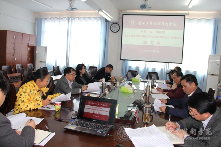 近日,中共中央、國務院印發了《關于加強和改進新形勢下高校思想政治工作的意見》,3月2日上午,我院于校本部教學樓召開《關于加強和改進新形勢下高校思想政治工作的意見》(以下簡稱《意見》)學習會。學院黨委副書記、紀委書記蒙啟成同志出席并主持學習會。學院辦公室、組織部、工會、宣傳部、教務處、學工部、團委、社科部的相關負責同志參加會議。