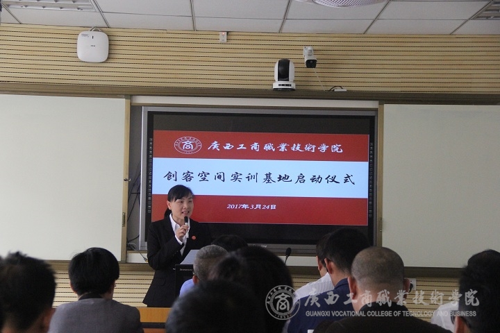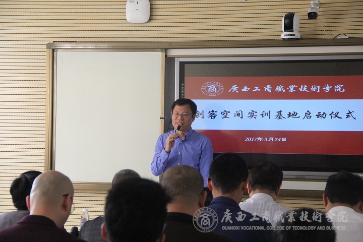 2017年3月24日上午9時,廣西工商職業(yè)技術學院創(chuàng)客空間實訓基地在校本部隆重啟動。廣西國際電子商務中心副主任張學青、廣西壯族自治區(qū)就業(yè)局創(chuàng)業(yè)指導科副科長騰幸宇、廣西電子商務行業(yè)指導委員會主任委員、廣西電子商務協(xié)會會長黃光強、廣西農小二農業(yè)科技有限公司總經理江洪建以及20余家企業(yè)代表、部分新聞媒體代表、兄弟院校領導和專家應邀參加啟動儀式;學院副院長李維率教務處副處長蘇波、學院團委副書記趙婷、財信系有關負責人以及電商教研室全體教師參加本次啟動儀式。啟動儀式由財信系覃遠霞主任主持。