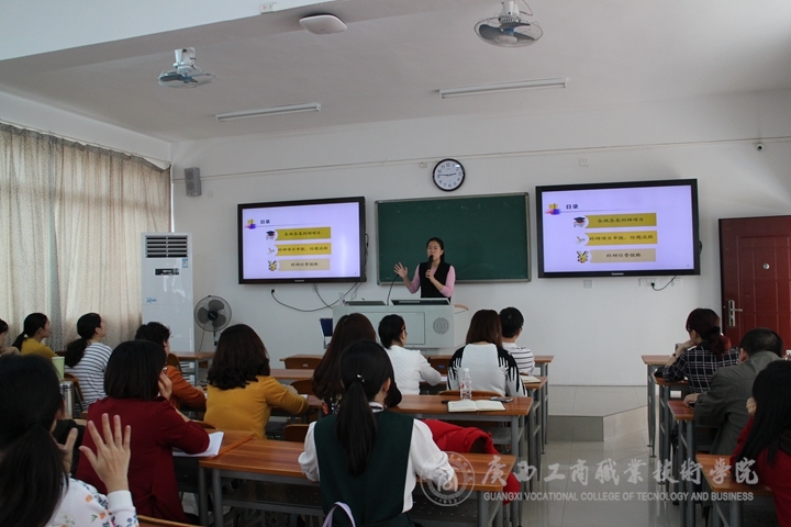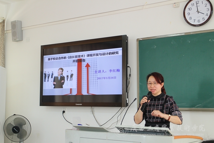 培訓(xùn)會后,接著召開院級委托專業(yè)課課改項目開題研討會,教務(wù)科研處李紅梅教授以自己主持的院級委托課題為例,從項目研究的背景意義、主要內(nèi)容及預(yù)期成果、研究方法、研究人員和時間安排等幾個方面對院級委托專業(yè)課課改項目進行了詳細(xì)的解讀,并在現(xiàn)場與在座的教師進行了熱烈的討論。