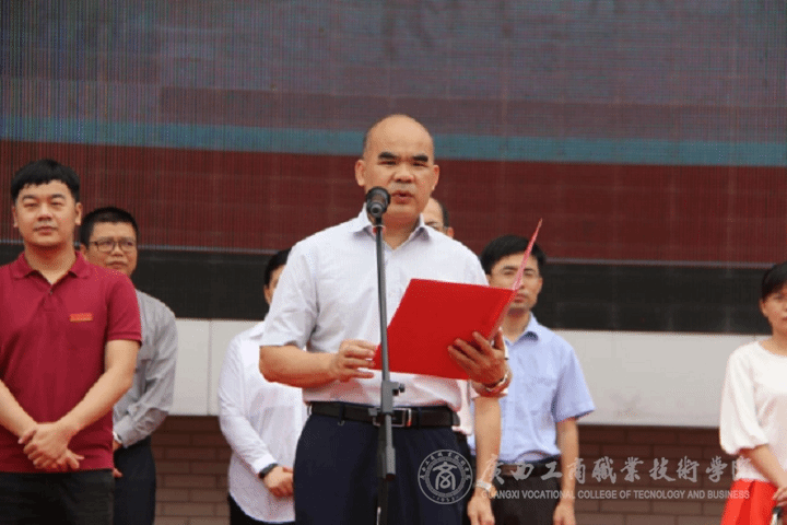 覃武云書記代表學院黨委領導班子對參加職業教育活動周啟動儀式的各位老師和同學表示熱烈歡迎,預祝我院職業教育活動周順利舉辦,并宣布2017年職業教育活動周正式開幕。