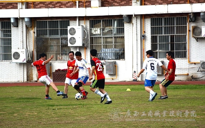 ??????? 在競技中鍛煉毅力,在合作中增進友誼,在比賽中發現快樂,在勝利中擁抱幸福。2017年5月7日下午四時,我院職教展足球友誼賽在我院校本部足球場激情開賽,本次兩支比賽隊伍是我院教職工隊和校友隊。