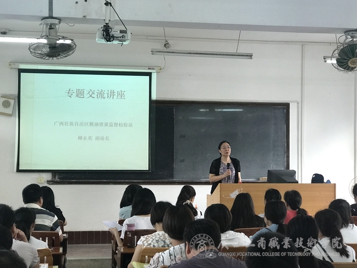 2017年5月14日上午,我院繼續教育部在東校區2教教室舉辦了一場主題為“糧油質量檢驗員職業發展”的學術講座。本次講座特別邀請到廣西糧油質量檢測站柳永英副站長主講,講座由高潔主任主持,2017年全區糧油質量檢驗員初級、高級培訓的全體學員以及培訓班授課教師參加了此次講座。