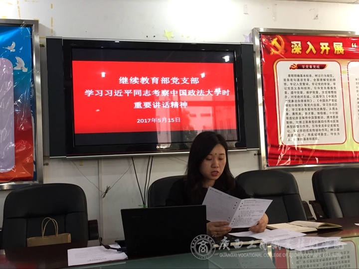 ? ? ? ? 2017年5月15日下午,繼續(xù)教育部在東校區(qū)工會樓會議室召開專題學習會,學習習近平總書記考察中國政法大學時重要講話精神。