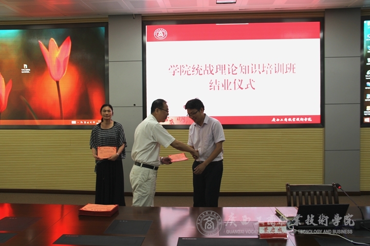在培訓(xùn)班結(jié)業(yè)儀式上,張居設(shè)、莫榮光兩位學(xué)員還和大家分享了學(xué)習(xí)體會。兩位學(xué)員代表表示,感謝學(xué)院黨委提供了此次難得的培訓(xùn)機(jī)會,通過培訓(xùn),深刻認(rèn)識到新形勢下統(tǒng)一戰(zhàn)線工作的重要性,今后要努力掌握統(tǒng)一戰(zhàn)線的理論政策知識,奠定扎實(shí)的工作基礎(chǔ),進(jìn)一步推進(jìn)學(xué)院統(tǒng)戰(zhàn)工作的新局面。