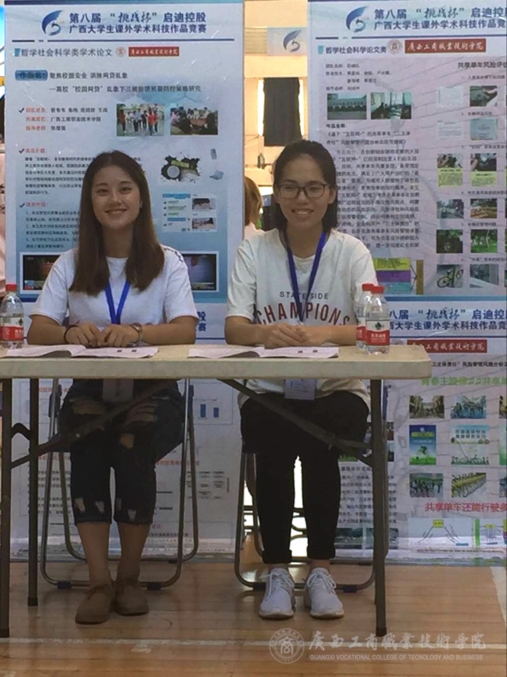 2017年5月27日,由共青團(tuán)廣西壯族自治區(qū)委員會(huì)、廣西壯族自治區(qū)教育廳等聯(lián)合主辦的第八屆“挑戰(zhàn)杯”啟迪控股廣西大學(xué)生課外學(xué)術(shù)科技作品競(jìng)賽開(kāi)幕式在廣西科技大學(xué)體育場(chǎng)成功舉辦。本次競(jìng)賽共有全區(qū)36所高校的194項(xiàng)項(xiàng)目參與現(xiàn)場(chǎng)作品展示,有55項(xiàng)作品參與現(xiàn)場(chǎng)答辯,我院由學(xué)院團(tuán)委組織申報(bào)的作品共有7項(xiàng)(如下表),其中曾韋韋、龐鴻珍、王閱、朱艷等同學(xué)的《高校“校園網(wǎng)貸”亂象下三維前饋預(yù)警防控策略研究》和黃星燦、盧光耀、謝聰、廖海德、蔡振江等同學(xué)的《基于“互聯(lián)網(wǎng)+”的共享單車(chē)“三主體責(zé)任”風(fēng)險(xiǎn)管理問(wèn)題分析及防范研究》兩項(xiàng)作品入圍現(xiàn)場(chǎng)展示,其分別由張煌強(qiáng)、劉結(jié)玲兩位老師指導(dǎo)。