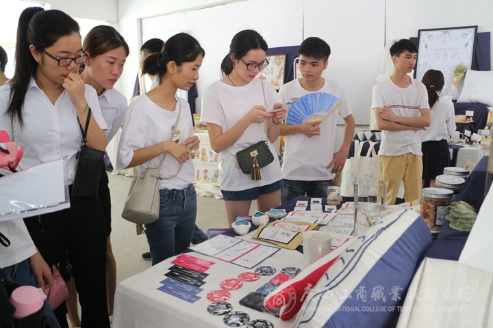 此次參加展演的同學們,不僅是要展演,還要借此推銷自己,去就業(yè)洽談會上也碰碰運氣,說不定會謀得一份實習的好工作。而財信系畢業(yè)設計展上不少文創(chuàng)作品,在校慶日當天也賣了不少好價錢。光顧他們的,不少是回來參加畢業(yè)典禮的學長學姐,還有前來招聘的企業(yè)家,以及慕名而來的周邊市民。