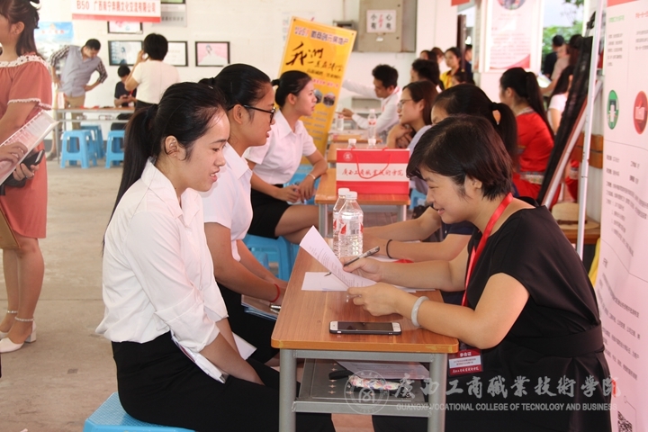 不少前來招聘的企業(yè)家一邊吃著“烘焙作品展示區(qū)”提供的餅干和點心,一邊去看酒店管理專業(yè)的學生折花和擺盤,渴了還正好喝一杯茶藝師現(xiàn)場泡的清茶,或者免費來一杯現(xiàn)場調制的顏色誘人的雞尾酒。他們也可以一邊捏緊手里的錢袋子,盤算新招聘實習生的薪金待遇,一邊去看會計系的錢幣發(fā)展變革展演,還和學生學習花式點鈔。