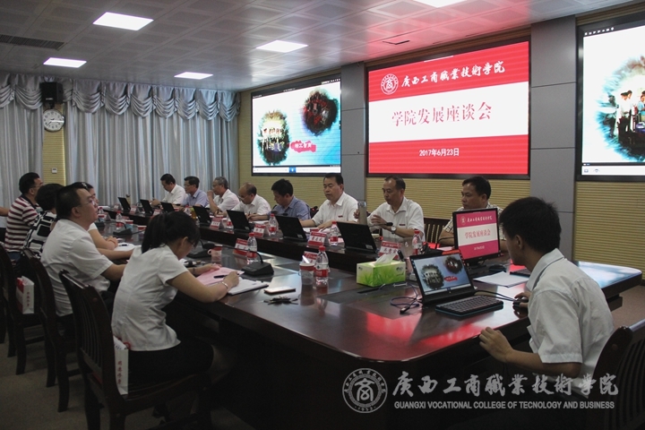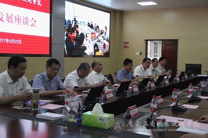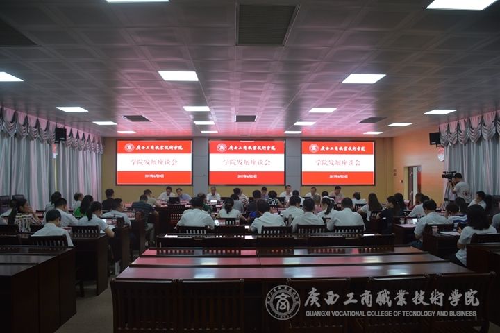 2017年6月23日下午,廣西工商職業技術學院舉辦“年代師生話發展”座談會,邀請畢業30年、20年、10年,和今年畢業的四個年代的校友代表,以及入職30年、20年、10年,和今年入職四個年代入職教師代表,以 “年代生”、“年代師”的座談交流方式,去研討學院發展的路徑,探究學院發展的愿景。自治區糧食局人事處處長周明耀,原學院黨委書記、副廳級調研員,現已退休的黃永蓬;原工貿、廣商院副院長,現任廣西水產畜牧學校校長、黨委書記黃祖江;廣西水產畜牧學校黨委專職副書記、副校長、副研究員關意寅;學院黨委書記覃武云、院長陳杰、黨委副書記、紀委書記蒙啟成;副院長李維出席會議;座談會由陳杰院長主持。
