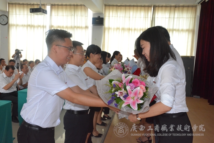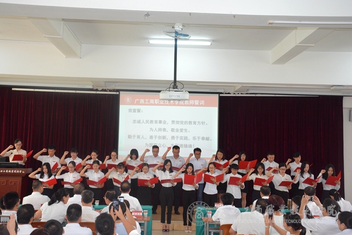 ?????? 會上,20多名新進教師在黨委組織部(人事處)副部長陶榮的帶領下上臺進行入職宣誓儀式。“我宣誓:忠誠人民教育事業,貫徹黨的教育方針。為人師表,敬業愛生。 勤于育人,善于創新,勇于實踐,樂于奉獻。為國家立心,為民族鑄魂!”隨著一聲聲鏗鏘有利的誓言響起,全場響起一片熱烈的掌聲。