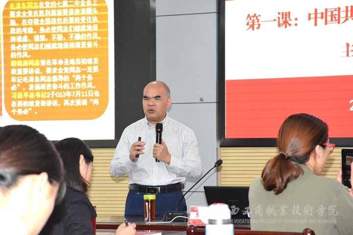 ? ? ? ? 隨后,覃武云提出了對中國共產(chǎn)黨不斷“趕考”的思考:從毛澤東同志提出的“兩個務(wù)必”的思想,到中國共產(chǎn)黨歷屆領(lǐng)導(dǎo)人帶領(lǐng)黨和人民實(shí)現(xiàn)的站起來、富起來、強(qiáng)起來的中國三級跳的偉大成就,中國共產(chǎn)黨取得了一個又一個的勝利,為中華民族做出了偉大歷史貢獻(xiàn),但是,中國共產(chǎn)黨還得繼續(xù)趕考。他引用習(xí)近平總書記的話告誡大家:我們黨作為執(zhí)政黨,面臨的最大威脅就是腐敗。要“不忘初心,繼續(xù)前進(jìn)”。
