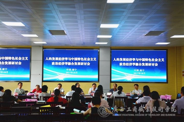 ??????? 新的歷史條件下,如何了解和理解以人民為中心的中國特色社會主義政治經濟學,是一個重要的課題。廣西人的發展經濟學研究會和廣西工商職業技術學院在2017年10月14日下午在學院2119視頻會議室聯合舉辦了人的發展經濟學與中國特色社會主義政治經濟學融合發展研討會。研討會協辦單位為《改革與戰略》雜志社。廣西人的發展經濟學研究會會員、學院社科聯委員會委員、思政老師、《改革與戰略》雜志社有關人員等約40人參加了研討會。研討會由廣西人的發展經濟學研究會副會長黃錫富教授主持。