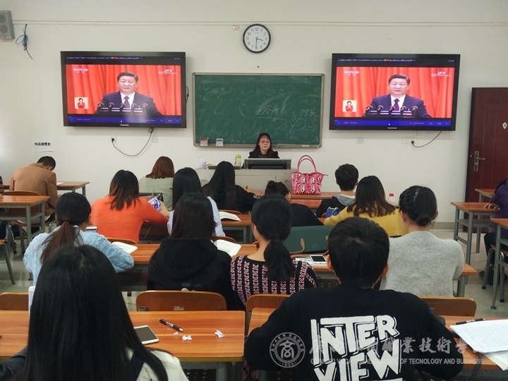 ? ? ? ? 社科部思政課教師圍繞習近平新時代中國特色社會主義思想展開了認真的學習討論,把思想統一到十九大精神上來。同時,按照十九大精神進課堂、進教材、進頭腦“三進”要求,在《形勢與政策》課程中開設“學習十九大精神”專題課,安排6個課時講授,讓所有在校生都學習領會十九大精神。其他專業教師也利用“五分鐘時事課”對廣大學生宣傳十九大精神。思政課教師林勇靈說,習近平新時代中國特色社會主義思想是黨和國家長期指導方針,而青年是實現中國夢的生力軍,“立德樹人”是高校的首要任務,我們思政課教師要帶頭學習十九大精神,在弄懂弄通上下功夫。在自己理解的基礎上,及時將十九大精神進課堂、進頭腦,讓廣大學生正確認識新時代的特征、目標、治國方略等,增強青年一代的使命感,為培養社會主義建設者和接班人貢獻一份力量。