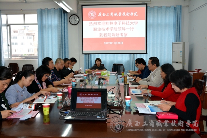 ? ? ? ? 11月30日下午, 桂林電子科技大學職業技術學院院長唐寧、副院長袁泉、副院長李曉記及教學口相關負責人前來我院交流,學院副院長李維率我院教學口相關負責人熱情的接待了唐寧一行。