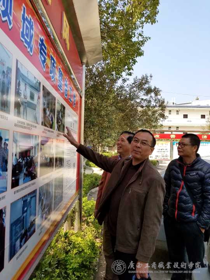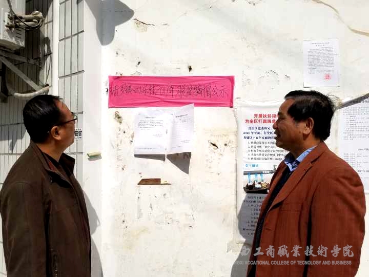 ? ? ? ? 同時,黨委宣傳部、黨委學工部還將本次活動作為本部門的黨員活動日,由蒙啟成率隊,在不打擾當地政府正常工作的情況下,走訪調研了四樂村建設情況并參觀走訪了珊羅鎮鎮府,瀏覽了其宣傳欄、公告欄,并仔細查看了珊羅鎮四樂村2017年脫貧摘帽公示情況。