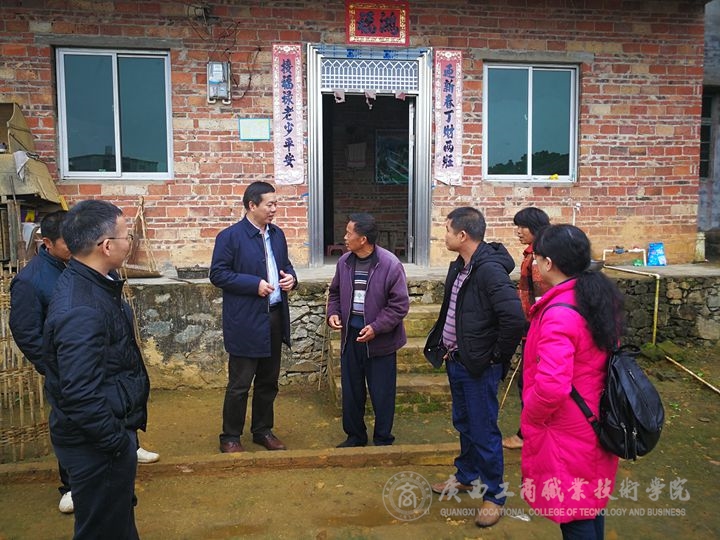 ??????? 在全國上下深入學習宣傳貫徹黨的十九大精神之際,教務科研處黨支部書記闕勇平、組織委員張鋒雄和財信系黨總支書記林芳及支部委員蘇波,于2017年12月14-15日到陸川縣清湖鎮那若村開展了助力精準扶貧進村入戶幫扶走訪慰問貧困戶和貧困村黨組織第一書記活動。學院副院長李維作為教務科研處黨支部成員也全程參加了活動。