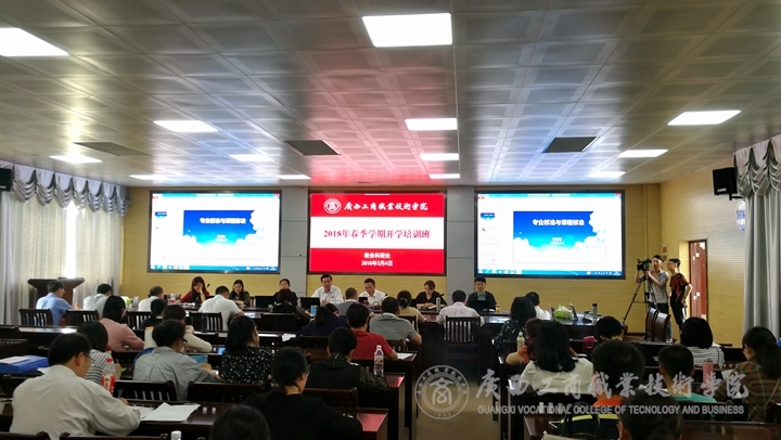 ??????? 根據學院黨政要務手冊工作安排,2018年3月4日下午,我院在學院本部2119會議室舉辦了2018年春季學期教學科研培訓班。參加培訓班人員有各系部教學(含頂崗實習)副主任、各教研室正副主任、專業(學科)帶頭人、核心課程負責人等教學骨干,黨委學工部、評督室、現教中心等部門有關領導以及教務科研處全體人員。培訓班由教務科研處處長闕勇平主持。主管教學科研工作的副院長李維參加了本次培訓班。