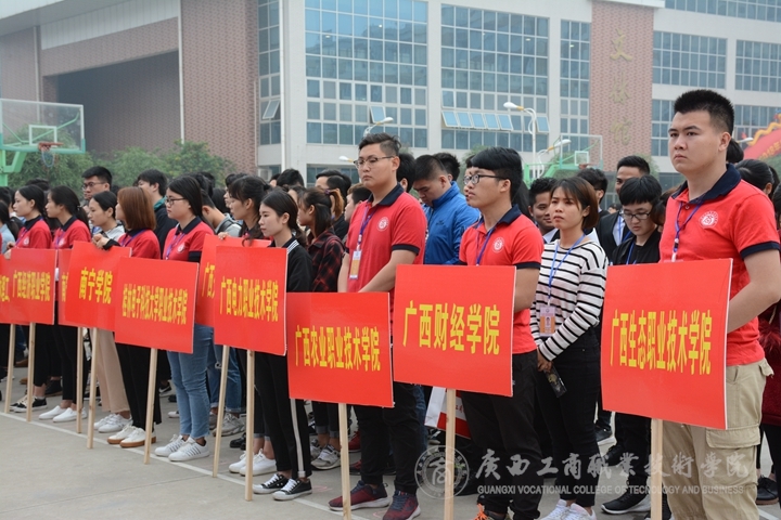 ? ? ? ? ?2018年3月27日上午,由廣西壯族自治區教育廳主辦,我院承辦的“2018年廣西職業院校技能大賽(高職組)工商企業管理技能賽項”開幕式在鵬飛校區LED屏幕下隆重舉行。學院副院長李維出席本次開幕式,裁判長、經管系主任高潔和來自各高職院校的指導老師及參賽隊伍、賽項裁判組成員參加開幕式。開幕式由我院教務科研處教授葉桂中主持。