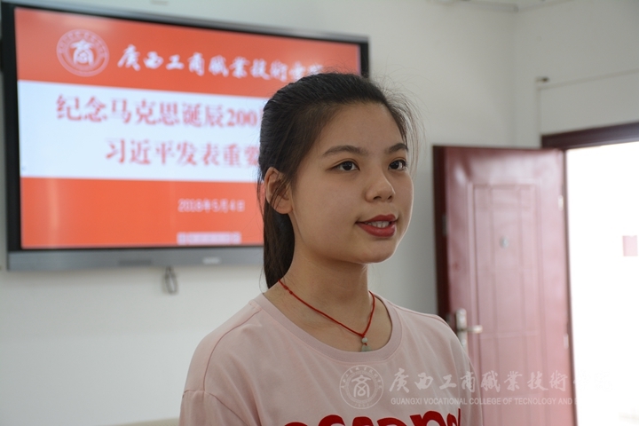 ??????? 經(jīng)管系廣策1601班楊欽梅同學(xué):今天總書記向我們講述了馬克思的一生,明確指出了馬克思主義對我們黨和國家的重要性,讓我們深刻明白馬克思主義的命運早已同中國共產(chǎn)黨的命運、中國人民的命運、中華民族的命運緊緊連在一起。因此我們要堅定對馬克思主義的信仰,堅持中國特色社會主義的道路自信、理論自信、制度自信、文化自信,努力成為中國特色社會主義合格建設(shè)者和接班人。