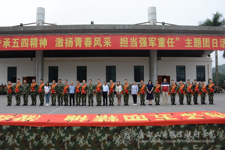 ??????? 2018年5月4日上午,我院師生團(tuán)員代表到武警廣西總隊(duì)機(jī)動(dòng)支隊(duì)二號(hào)訓(xùn)練場(chǎng)參加2018年“傳承五四精神,激揚(yáng)青春風(fēng)采,擔(dān)當(dāng)強(qiáng)軍重任”主題團(tuán)日活動(dòng)。機(jī)動(dòng)支隊(duì)政治委員王丹、副支隊(duì)長(zhǎng)李迎新、政治工作處主任蒙鴻鳴、保障處處長(zhǎng)張永銳、我院黨委學(xué)生工作部部長(zhǎng)助理黃旭艷、廣西警察學(xué)院學(xué)工處副處長(zhǎng)覃偉剛、工會(huì)主席李中堅(jiān)、江南小學(xué)黨支部書記黃學(xué)科、副校長(zhǎng)許慧燕出席本次活動(dòng)。同時(shí)參加本次活動(dòng)的還有以上單位的相關(guān)工作人員、支隊(duì)院內(nèi)全體官兵、廣西警察學(xué)院團(tuán)員團(tuán)員代表,以及江南小學(xué)團(tuán)員代表。