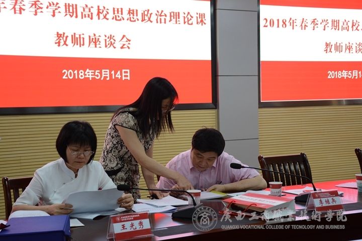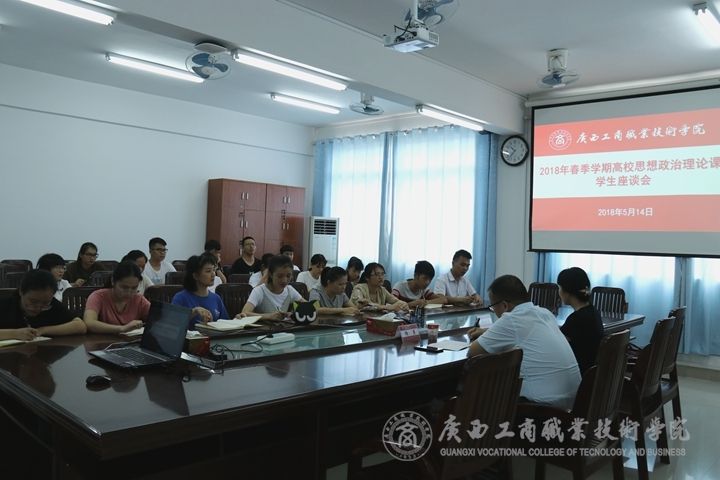 隨后進(jìn)行了座談會。座談會分為教師座談會和學(xué)生座談會。兩場座談會均由檢查組專家主持。思政部專職教師16人參加教師座談會,2016級、2017級部分學(xué)生代表20人參加學(xué)生座談會。教師座談會中,檢查組專家了解了學(xué)院領(lǐng)導(dǎo)聽課情況、老師上課情況以及財(cái)務(wù)支出情況等等。而學(xué)生座談會中,專家問了學(xué)生代表喜歡哪位老師的授課方式,學(xué)生表示,黨委宣傳部部長韋勝強(qiáng)教授穿著民族服飾上課,授課方式獨(dú)特有趣。
