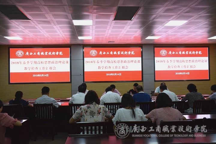 2018年5月14日上午,2018年春季學(xué)期高校思想政治理論課教學(xué)檢查組專家蒞臨我院進(jìn)行思想政治理論課教學(xué)檢查指導(dǎo)工作。學(xué)院黨委書記覃武云、院長陳杰、黨委副書記紀(jì)委書記蒙啟成、副院長李維、以及我院各個(gè)部門相關(guān)負(fù)責(zé)人接待了檢查組專家。檢查組由廣西師范學(xué)院正廳級調(diào)研員、第五屆廣西高校思想政治理論課教育教學(xué)指導(dǎo)委員會副主任委員李繼兵教授擔(dān)任組長,廣西醫(yī)科大學(xué)覃桂秀教授,桂林醫(yī)學(xué)院王光秀教授,第五屆廣西高校思想政治理論課教育教學(xué)指導(dǎo)委員會委員、廣西財(cái)經(jīng)學(xué)院楊勇教授為本次教育廳檢查組成員組成。本次教學(xué)檢查工作圍繞貫徹落實(shí)《高等學(xué)校思想政治理論課建設(shè)標(biāo)準(zhǔn)》、高校思想政治理論課教學(xué)改革情況、習(xí)近平新時(shí)代中國特色社會主義思想和黨的十九大精神及2018年全國兩會精神進(jìn)課堂情況等內(nèi)容進(jìn)行。檢查共分走訪、聽課、匯報(bào)會、師生座談會和反饋會5個(gè)環(huán)節(jié)。