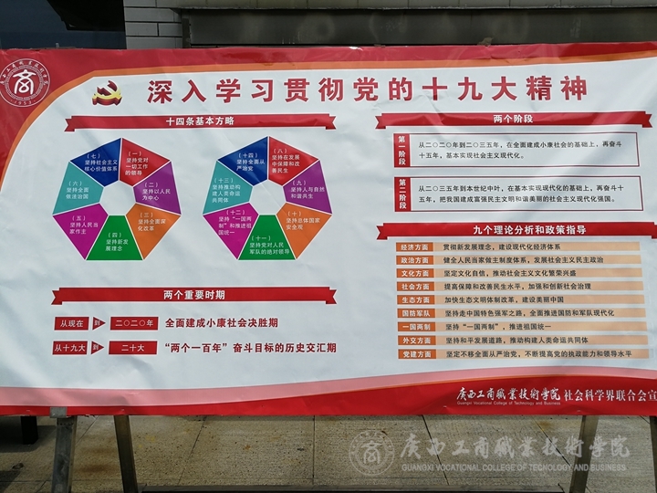 ? ? ? ? 根據(jù)《條例》以及自治區(qū)社科聯(lián)《關(guān)于開展廣西2018年社會科學(xué)普及活動周的通知》(桂社科聯(lián)﹝2018﹞18號),我院結(jié)合本院實際,以“深入學(xué)習(xí)貫徹黨的十九大精神,奮力譜寫學(xué)院發(fā)展新篇章”為主題制訂了2018年社會科學(xué)普及活動周工作方案,并于5月14日-20日期間,在校園內(nèi)外通過展板宣傳、發(fā)放宣傳單、專家講座、與對口支援院校開展職教研討等形式積極開展社會科學(xué)普及活動。