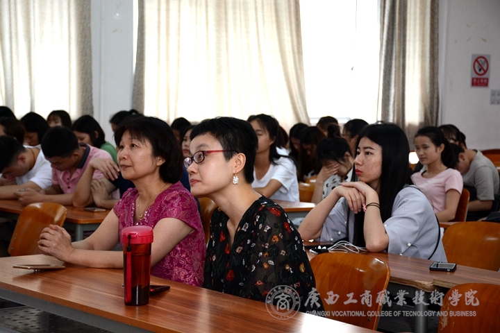 ? ? ? ? 2018年6月19日下午,會計系校友報告會在學院鵬飛校區報告廳召開。南寧市金譽聯合會計師事務所副所長黃寶玉校友返校為學院師生做報告。