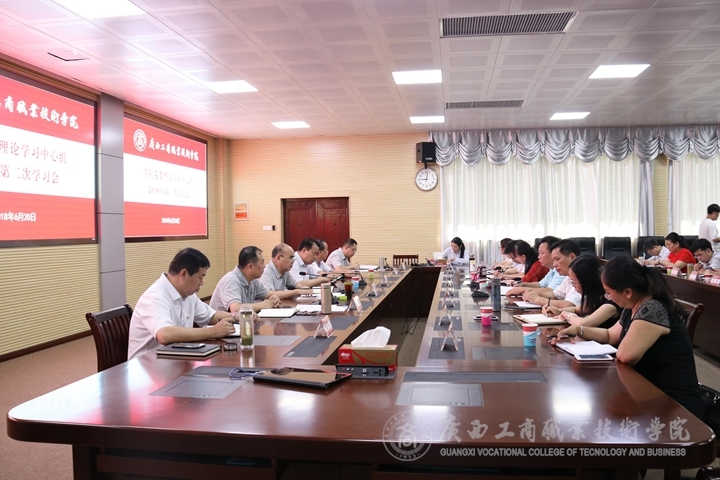 ??????? 2018年6月20日上午,學院黨委理論學習中心組2018年第二次學習會于鵬飛校區會議室召開。黨委書記覃武云主持學習會并作總結發言,學院領導、黨委委員、各部門主要負責人、各系黨總支、直屬黨支部書記、學院工會、團委負責人參加了會議。