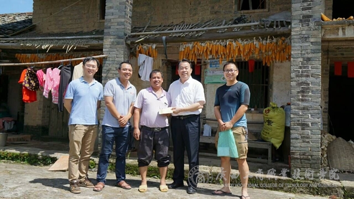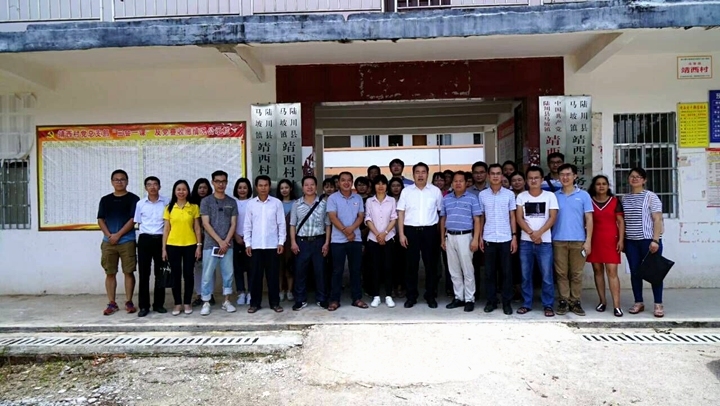 ??????? ?為落實自治區扶貧開發領導小組關于進一步抓好“一幫一聯”“一戶一冊一卡”工作的部署和要求,結合學院黨委關于開展慶祝建黨97周年主題黨日活動的安排, 2018年6月29日,我院院長陳杰率領黨委辦公室(學院辦公室)、財務處、監察室/審計室、繼續教育部、圖書館等部門教職工一行25人赴陸川縣馬坡鎮靖西村開展“一幫一聯 結對幫扶”走訪調研活動暨基層黨組織主題黨日活動。