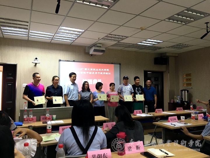 ??????? 理無專在,而學無止境也。本次培訓班于7月1日開班,至7月5日結束,培訓班教學內容豐富,形式多樣,主要包括《團隊建設與管理能力》、《信息化教學能力提升實操》、《國家自科、社科項目申報經驗分享》、《新時期教師師德師風》、《現代教育管理前沿思想》、《現代學徒制》、《行動導向的專業建設與課程開發》等專題講座,團隊戶外素質拓展訓練以及赴柳州職業技術學院開展的產教融合校際調研交流活動和一次分組討論活動。經過5天緊張而有序的學習,學員們收獲頗豐。