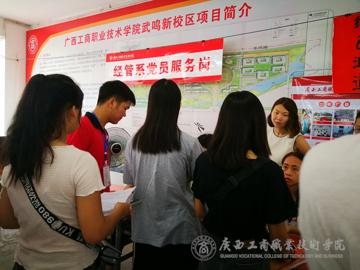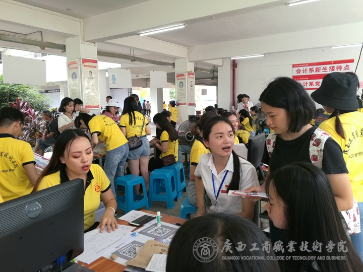 各系入黨積極分子們熱情迎新,從校外迎接點,到進入宿舍,高舉學院標志的志愿者們熱情地迎接前來報到的同學,熱心引導學弟學妹,他們幫忙提行李、詳細介紹報到注冊流程、指導新生們?nèi)绾伪M快適應大學生活、怎樣規(guī)劃自己的大學生涯……紅色先鋒們竭盡所能為新生和家長提供必要的幫助,時刻謹記著廣商院人的責任與使命,他們的熱情服務之火成為迎新當天最靚麗的一抹紅色,在學弟學妹們心里點燃了紅色的傳承之光。