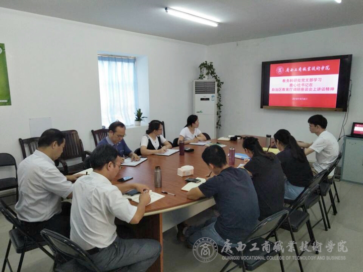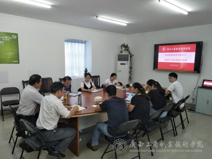 2018年9月6日下午,教務科研處黨支部全體黨員在學術交流中心召開新學期第一次集中學習會,認真學習《習近平新時代中國特色社會主義思想三十講》、《中國共產黨紀律處分條例》和《自治區黨委書記鹿心社在自治區教育廳調研座談會上的講話》等內容,進一步掌握習近平新時代中國特色社會主義思想的深刻內涵,明確新修訂的《中國共產黨紀律處分條例》的規定和要求,增強高職教育工作的責任感、使命感和緊迫感。