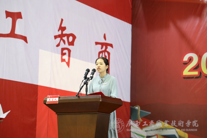 接著由會計系會計1805班甘凌艷作為新生代表發言,她提出了幾點倡議:第一,立德修身,做一個德才兼備的學生;第二,志存高遠,要敢于去做一個仰望星空的人,更要做民族的脊梁;第三,勤奮讀書,“書山有路勤為徑,學海無涯苦作舟”;第四,自信自強,只有自強才能自信。