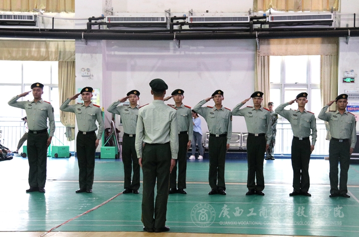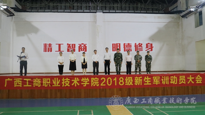2018年10月22日上午,廣西工商職業技術學院2018級新生軍訓動員大會在鵬飛校區文體館二樓隆重舉行。參加本次動員大會的有:學院副院長李維和武警廣西總隊機動支隊三大隊大隊長陳宗沛出席了會議,學院教務科研處處長闕勇平、后勤管理處處長助理譚爵璽;各系黨總支書記、各系副主任、2018級輔導員、學工秘書、黨委學生工作部相關老師以及2018級全體學生參加了本次動員大會。本次軍訓動員大會由學工部副部長林雯主持。